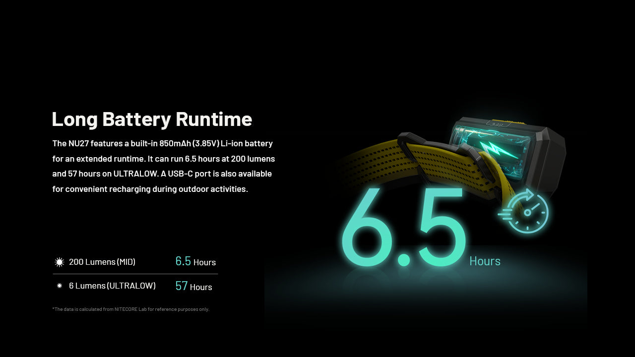 Engineered with TrueVision+ technology, the NU27 ensures maximum light transmission and a broad, uniform beam, reaching distances of up to 123 meters. It also features an auxiliary red light, which helps preserve night vision and includes two brightness levels, as well as a slow flashing mode for emergency signaling. Equipped with a built-in 850mAh Li-ion battery, the NU27 delivers up to 57 hours of runtime on its ultralow mode, ensuring long-lasting performance during extended outings.
