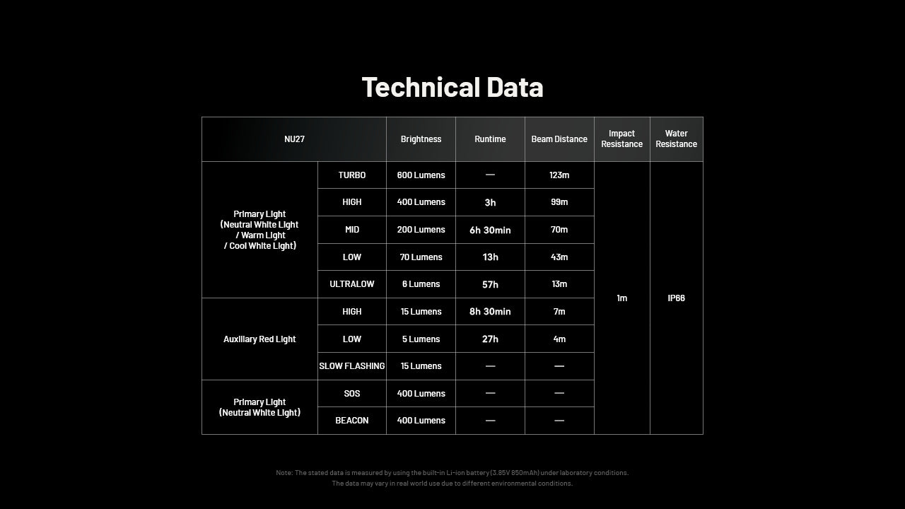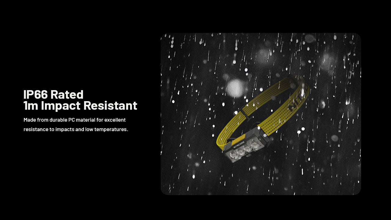 The IP66-rated water resistance and impact resistance up to 1 meter provide reliable durability in harsh outdoor conditions, making the NU27 the perfect headlamp for those who need a lightweight, high-performance solution for challenging environments.