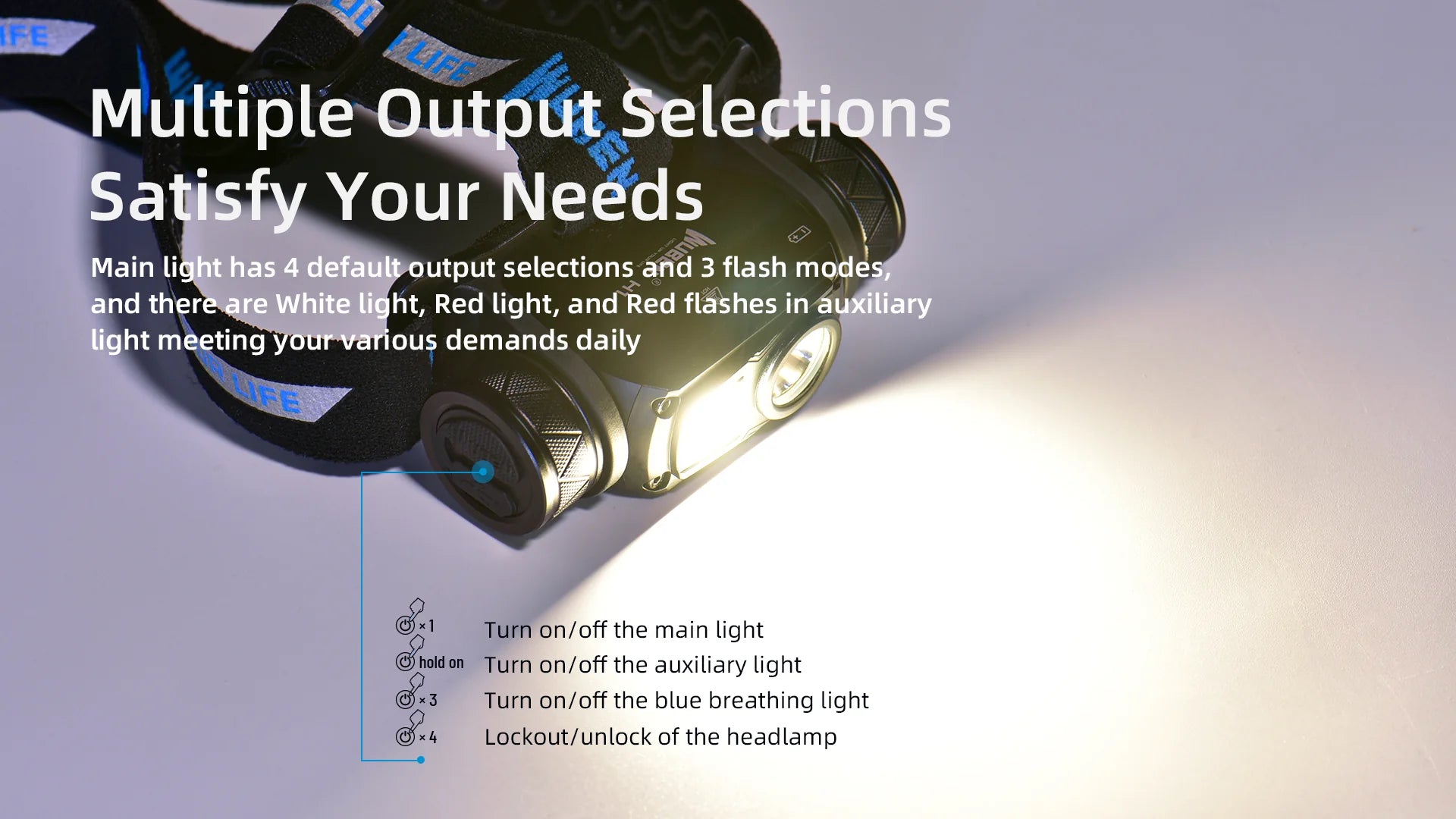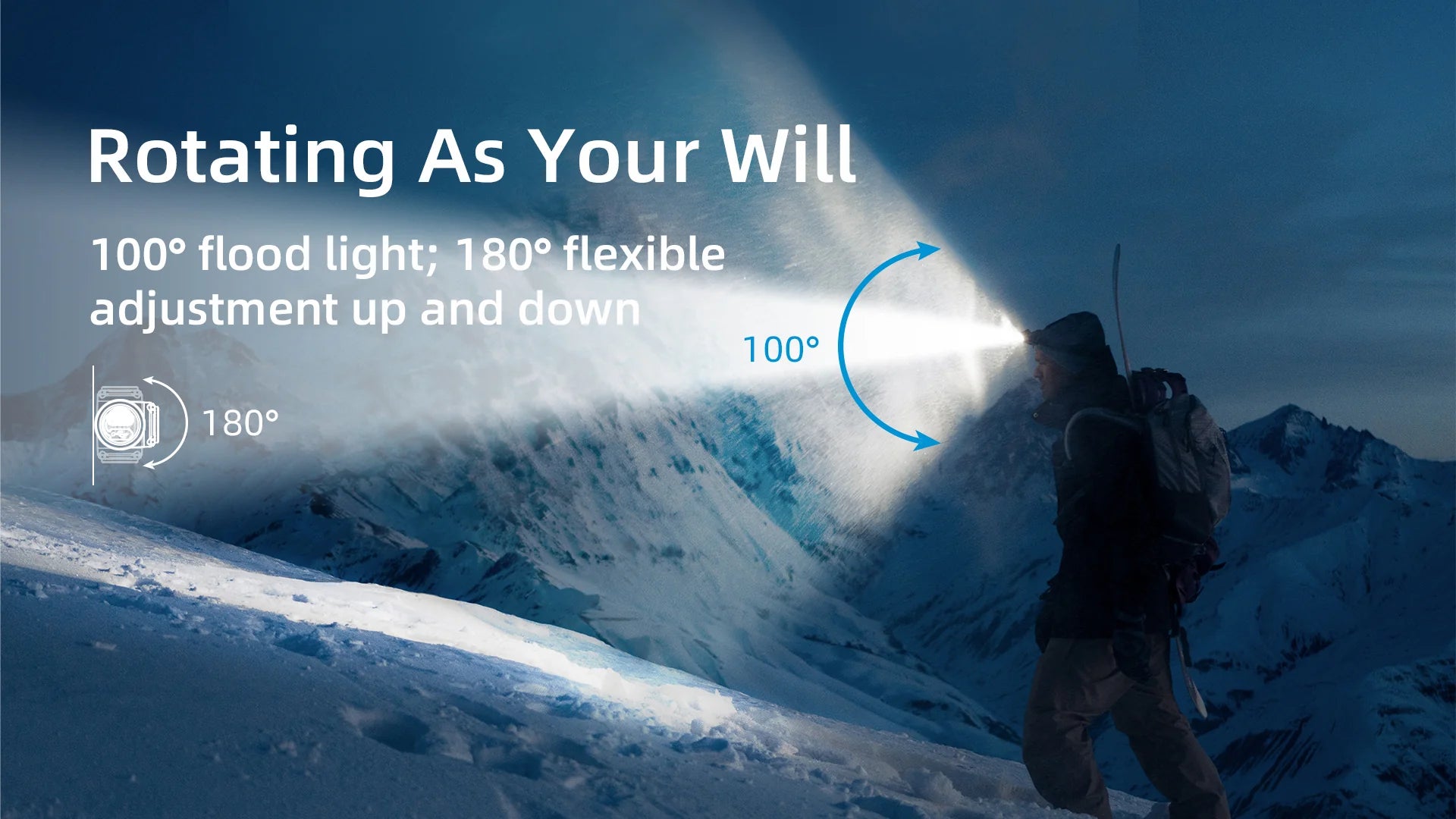 Crafted from anodized aluminum and weighing just 54 grams without its cell, the Wuben H1 offers fatigue-free comfort for overnight wear. The head tilts between 100° and 180°, allowing precise beam placement without contorting your neck. A three-strap headband with silicone-wave grips locks the lamp in place, even during high-intensity activities.
